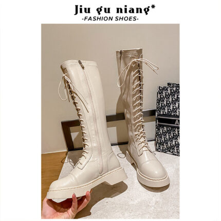 Oversized widened sleeves that do not exceed the knee, long boots with high sleeves and flat bottoms, 2020 new lace up knight boots, women’s chubby MM extra fat sleeves